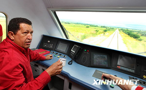 圖:委內(nèi)瑞拉總統(tǒng)參加中國火車試車活動