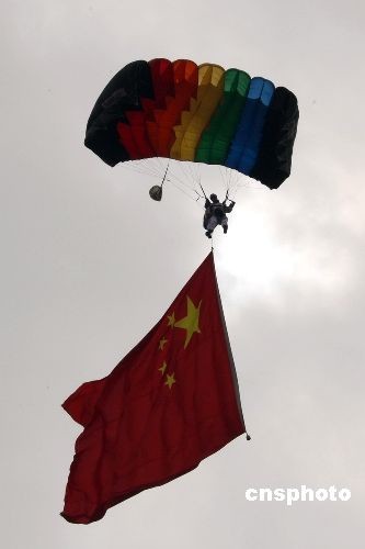 圖:八一跳傘隊在中國航展演繹美麗畫卷