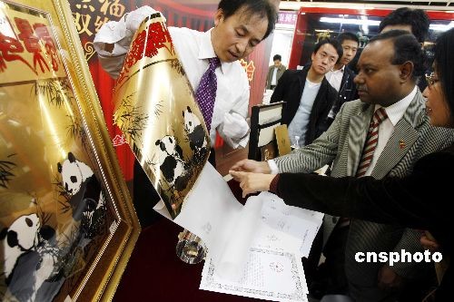 圖:純金的熊貓國(guó)畫(huà)亮相京城
