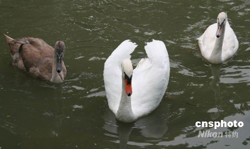 圖:滬野生動物園疣鼻天鵝生出罕見灰色后代