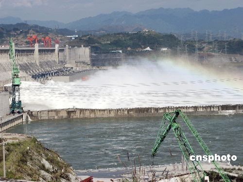 圖:三峽大壩首泄冬洪 白霧蒸騰彩虹飛舞
