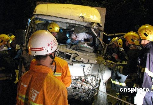 圖:廣西玉林兩貨車相撞 一死三傷