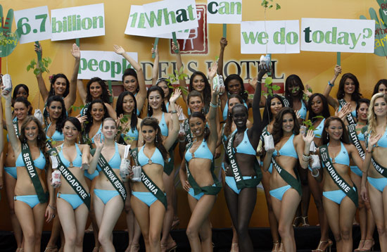 地球小姐參選佳麗媒體見面會(huì)秀泳裝