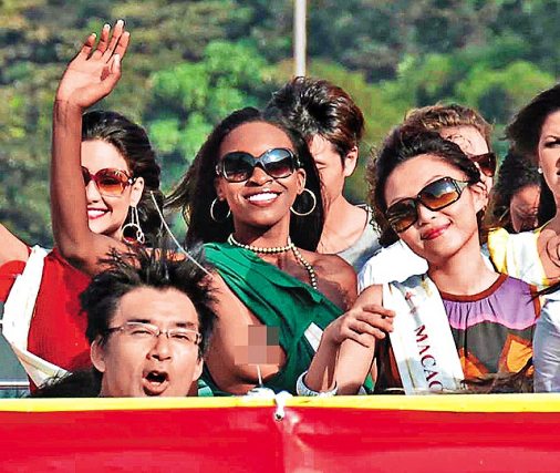 國際小姐游香港遇大風(fēng) 贊比亞佳麗不慎露點(diǎn)(圖)