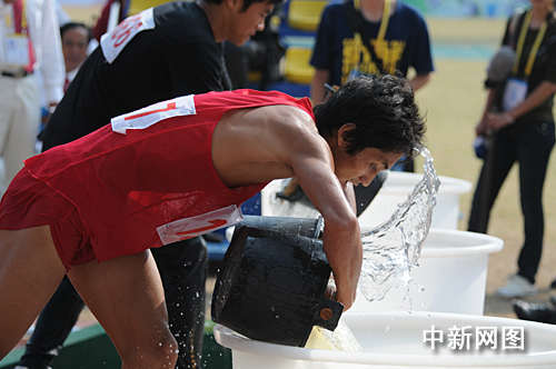 圖:農(nóng)運會田徑賽場忙“抗洪”
