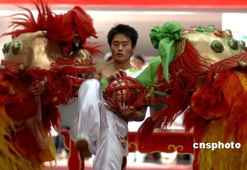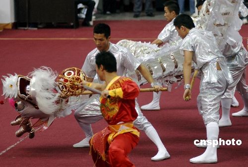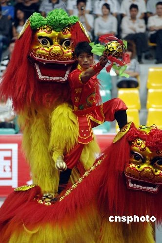 圖:第六屆農(nóng)運(yùn)會上演精彩紛呈的舞獅賽