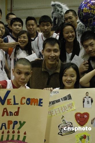 圖:易建聯(lián)訪紐約受數(shù)百小球迷歡迎