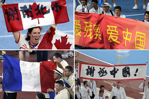北京殘奧會閉幕式于十七日晚八時在殘奧會主體育場“鳥巢”開始,在充滿浪漫色彩和童話氛圍的文藝表演“寄往未來”后,國際殘奧委主席克雷文致辭,他對北京殘奧會給予高度評價,稱是“有史以來最偉大的一屆殘奧會”,他代表所有殘奧大家庭成員,感謝北京奧組委,感謝殘奧會舉辦城市香港、青島、北京,感謝中國!