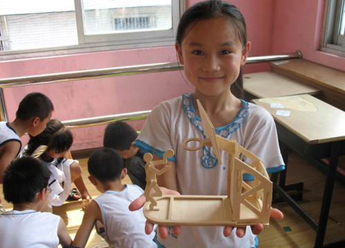 下午的時(shí)間交給了孩子們。他們先要無(wú)圖紙搭積木,即僅憑借想象力搭疊積木。“不憤不啟,不悱不發(fā)”,在關(guān)鍵時(shí)刻,隊(duì)長(zhǎng)將示意圖紙發(fā)給了孩子們;顒(dòng)結(jié)束時(shí),還是有些孩子沒(méi)有搭出成品。隊(duì)員就鼓勵(lì)他們?cè)俳釉賲。最后,自由活?dòng)的時(shí)間到了,有的孩子玩“老鷹捉小雞”,有的孩子跟著女老師學(xué)起了舞蹈……
