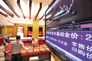 金價(jià)“牛氣沖天”,點(diǎn)燃了市民炒金、藏金的熱情。近日,溫州市黃金市場(chǎng)上掀起了一波投資熱——紀(jì)念金、投資型金條、黃金飾品等實(shí)物金銷售紅火(如圖)。
