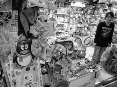 此外,一些街邊的時尚小店也提前給店面換上了萬圣裝。南瓜帽、巫婆套裝、搞怪面具、骷髏衫……都放在店門臉最顯眼的位置!拔疫@是剛買回來的,要到萬圣節(jié)了,擺這些道具可以活躍店里的氣氛,并且也能吸引部分客源。 ”文化路附近一家小店老板李獻說。