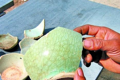 昨日(3日)上午,普查小組來到水庫,只見這里依山傍水,盛產高嶺土和釉水等礦產資源,具備燒制青瓷的條件。在水庫原儲水處發(fā)現(xiàn)了大量陶瓷片,堆積層厚達1至5米。普查組專家隨手拿起一件碎瓷,碗底有一個明顯的乳心。專家稱,這是明顯的元代青瓷特色。