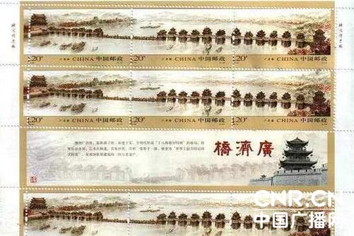 《廣濟橋》特種郵票11月16日正式發(fā)行!稄V濟橋》特種郵票是有史以來中國郵政首次專門為粵東地區(qū)發(fā)行的地方題材特種郵票;也是新世紀(jì)以來,繼《深圳經(jīng)濟特區(qū)建設(shè)》、《丹霞山》、《石灣陶瓷》之后,中國郵政專門為廣東省發(fā)行的第四套地方題材特種郵票。這套郵票的成功發(fā)行,是潮州市委、市政府貫徹、落實汪洋書記在粵東地區(qū)現(xiàn)場會上要求潮州大力推進經(jīng)濟與文化融合,實現(xiàn)跨越式發(fā)展的會議精神的有力舉措。