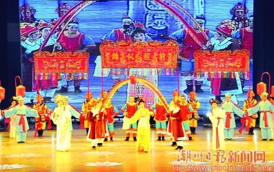 晚會(huì)的節(jié)目豐富多彩,緊隨潮州大鑼鼓之后的舞蹈《閨繡》,深刻而生動(dòng)地演繹了潮州繡女的心靈手巧和婀娜多姿。潮州弦詩(shī)樂(lè)《浪淘沙》,讓觀眾領(lǐng)略到潮州音樂(lè)的細(xì)膩和悠婉;潮州細(xì)樂(lè)《湘橋夜話》,把工夫茶茶藝表演恰到好處地融入其中,讓悠揚(yáng)潮樂(lè)中飄蕩著裊裊茶香;男女聲對(duì)唱《鳳凰山茶歌》,把畬族青年男女的熱情奔放的性情淋漓盡致地表達(dá)出來(lái);潮州歌冊(cè)《潮州八景新唱》,則讓“老八景”唱出“新味道”。而潮曲表演《陳三五娘回潮州》,巧妙地讓陳三五娘這對(duì)古代眷侶回到“娘家”,一路行來(lái)處處感受著今日潮州城市面貌的深刻變化。在剛剛啟用的市文化藝術(shù)中心大劇院這個(gè)舞臺(tái)上,在五光十色的霓虹燈下,鄭舜英、唐龍通、許佳娜等潮劇名角和潮州市各演藝團(tuán)體用精心排練的節(jié)目,把晚會(huì)的氣氛一次次推向高潮,也贏得了現(xiàn)場(chǎng)觀眾一陣陣熱烈的掌聲。(吳杰文)