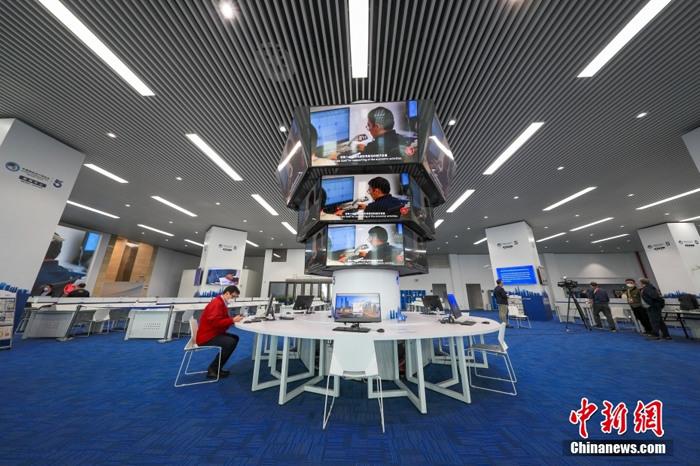 媒體記者在新聞中心觀看第五屆進(jìn)博會開幕式