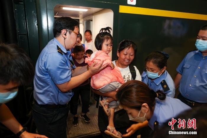 因強(qiáng)降雨被困北京門頭溝的K396次列車旅客抵達(dá)北京豐臺站