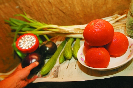 沿著水泥修葺的臺(tái)階而下,記者感到非常涼爽,前行約兩米,一間約10平方米的住所呈現(xiàn)在眼前。房間四周刷得雪白,床上的被褥干凈,音響、書架擺放在床前。床的兩端,挖掘出高2米、寬約70厘米的巷道,在昏暗燈光的照射下,靜謐、溫馨。巷道墻壁上,被挖出多個(gè)平臺(tái),哈密瓜、啤酒、黃瓜等放置在上面。“地下室19攝氏度,把食品放這兒,就像放冰箱里一樣!标愋履暾f。