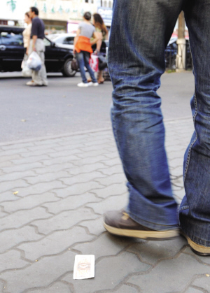公園小徑兩旁的椅子上坐滿了休息、聊天的市民。聊天間隙,有人指向那一角錢,顯然,他們發(fā)現(xiàn)了。不過記者等了半天,也不見有人行動。很快有一過路人發(fā)現(xiàn)了這一角錢,瞬間,他左右環(huán)顧,然后走開。第二個(gè)路過的是個(gè)小姑娘,她腳踩在人民幣上走了過去,還回頭看了一眼地上的毛錢。接著走過的是一位老者,顯然他也發(fā)現(xiàn)了這一角錢,老者用目光掃視周圍的人,見無人理會,老者停頓了一下,繞開走了過去。