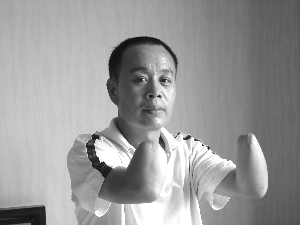 自從三年前失去雙手,44歲的王好讓現(xiàn)在每天穿衣、吃飯、上廁所都得別人幫忙。