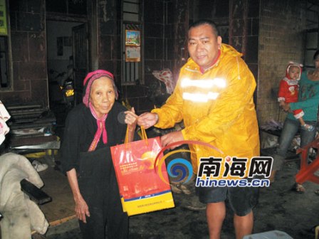 今日上午8時30分,共青團(tuán)三亞市團(tuán)委青年志愿者、海南省紅十字救援大隊三亞分隊,冒著雷雨天氣到保亭黎族苗族自治縣看望了這幾位健在的慰安婦。由于保亭黎族苗族自治縣地屬山區(qū),鄉(xiāng)村道路復(fù)雜,幾位受害者居住較為分散,為了今天能夠安全順利的做好這次慰問活動,志愿者和紅十字會人員馬不停蹄,他們首先趕到南茂農(nóng)場五區(qū)北賴隊看望陳金玉阿婆,隨后看望陳連村阿婆。中午12時30分驅(qū)車去響水鎮(zhèn)什齊苗村,但路上被山洪攔阻,只好把車停在路上,徒步趕到數(shù)里之外的鄧玉民阿婆家。