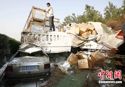 中新網(wǎng)武漢10月16日電 (記者 徐金波 張芹)受大霧天氣影響,京港澳高速湖北段16日連續(xù)發(fā)生多起車禍,數(shù)十臺汽車在3公里內(nèi)連環(huán)相撞,武漢孝感兩地數(shù)百人聯(lián)手開展生命大救援。截至目前至少已造成8人死亡23人受傷,京港澳高速澳京方向車輛滯留近5個小時。