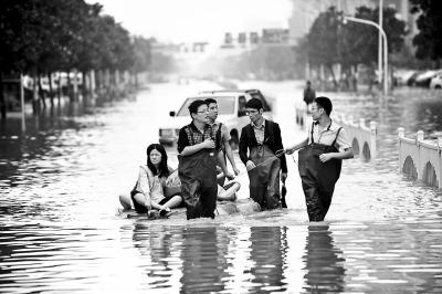 救災(zāi)辦工作人員告訴北青報(bào)記者,救災(zāi)物資現(xiàn)在還比較充裕,前天剛接收了7000箱礦泉水,運(yùn)輸問(wèn)題成為難點(diǎn)。很多道路不暢通,一部分是因?yàn)榉e水過(guò)多,一部分因避災(zāi)車(chē)輛、拋錨的故障車(chē)阻塞立交橋,車(chē)輛無(wú)人認(rèn)領(lǐng)。對(duì)這種車(chē)輛,首先從交警處聯(lián)系車(chē)主,實(shí)在沒(méi)有辦法的用拖車(chē)拖到路邊。另外,部分受災(zāi)區(qū)域積水深度也很尷尬,“70厘米的水深,沖鋒舟、皮劃艇都駛?cè)氩涣,人走進(jìn)去又全都濕透!