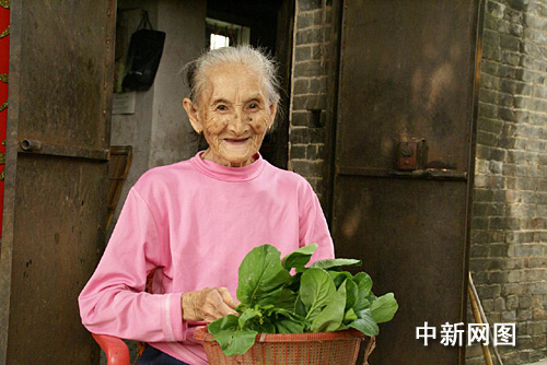 今年已99歲的楊容開老太婆還能自己親手種植蔬菜。作者:孫建駒 曾令華