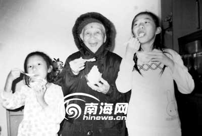 孫阿婆堅(jiān)持運(yùn)動自然體格強(qiáng)健。而兒孫們對她無微不至的關(guān)愛則讓她感到快樂。孫阿婆膝下有6個子女,也都已年過半百,如今一大家50多人五代同堂,其樂融融。平時,兒女們都很疼愛孫阿婆,幾個兒女輪流接她去家里住,她住在哪家,其他兒孫們也經(jīng)常去看望她,給她買一些營養(yǎng)品,陪她聊聊天。孫阿婆百歲壽辰那天,兒孫們?yōu)樗≈貞c祝,看著兒孫滿堂,一家人和和睦睦,孫阿婆極為幸福。(宋亮亮)