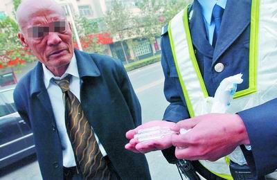 專門用廉價(jià)藥水碰瓷騙錢的“老干部”孫某栽了。昨日,打著領(lǐng)帶、穿著皮鞋的孫某故伎重施時(shí),被人發(fā)現(xiàn)報(bào)警。