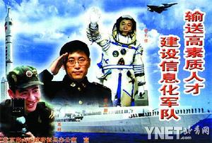 “今年在媒體上刊登的征兵公益廣告總計(jì)四次,貫穿著整個征兵宣傳期。”市征兵辦有關(guān)工作人員說,“征兵公益廣告每次宣傳的主題和內(nèi)容各不一樣,比如第一次的畫面凸顯身著2007式新軍服的三軍將士,讓大家了解人民解放軍的組成;第二次的畫面中以雷鋒、楊業(yè)功、李中華為主體,加上隱在背景中的黃繼光,弘揚(yáng)的是革命英雄主義;航天英雄楊利偉、大學(xué)教授方永剛、北大學(xué)子兵高明是第三次廣告的主體,以吸引高素質(zhì)人才!