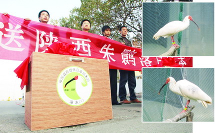 11月18日清晨,來自我省洋縣的兩只朱鹮從西安咸陽國際機(jī)場出發(fā),在省出入境檢驗(yàn)檢疫局監(jiān)管下,被包機(jī)護(hù)送至上海后轉(zhuǎn)機(jī)飛赴日本。這是洋縣的朱鹮第三次告別生養(yǎng)自己的故鄉(xiāng),落戶日本國土。