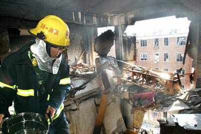 更讓人觸目驚心的是樓內(nèi)的爆炸現(xiàn)場,據(jù)進(jìn)入現(xiàn)場的消防人員介紹,整個五六層幾乎被炸穿了,其中,502室已與602室貫穿,603室的樓板坍塌,7樓一間屋內(nèi)的樓板也出現(xiàn)突起。四樓幾家住戶的防盜門也均被炸飛到屋內(nèi)。