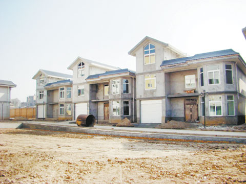 藍田縣國土資源局新家屬院位于該縣黃金地段的北環(huán)路邊、汽車客運站附近。群眾反映的9棟住宅就建在該局的新家屬院里。記者來到這里時,兩棟家屬樓和9棟“低矮建筑”都已完工,已經(jīng)進入裝修階段。家屬區(qū)門房墻上張貼的一份蓋有“藍田縣國土資源局物業(yè)辦”印章的《通知》顯示,這個小區(qū)11月12日給住戶發(fā)了鑰匙,11月17日試水。記者看到,9棟“低矮建筑”都是青灰色仿古屋頂,同一品牌的防盜門,一層都建有車庫,不僅外觀完全一致,面積大小也完全相同。一位正在裝修的該縣國土局工作人員的家屬告訴記者,兩棟單元樓每戶130多平方米,是集資建房;那些“別墅”是給局領導修建的住房,是3層建筑,三四百平方米。有知情人說,國土局里并沒有9名局級干部,多余的“別墅”是給縣上領導修建的。私人要蓋這樣的房屋費用會低一點,但至少也要花30多萬元。