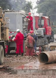 據(jù)了解,這口氣井為中原油氣公司鉆井隊(duì)所鉆的松淺22井,剛剛于昨日上午鉆探完成,氣井深度在1600米左右。據(jù)參與現(xiàn)場(chǎng)指揮的華油天然氣股份有限公司的高級(jí)工程師鄧時(shí)進(jìn)介紹,這口井是華油天然氣股份有限公司委托給中原油氣公司鉆井隊(duì)鉆探的。該氣井在鉆探完成全部起桿上井時(shí),并沒(méi)有發(fā)現(xiàn)任何的異常狀況,但是當(dāng)探桿再次伸入氣井100多米的深度時(shí),就發(fā)現(xiàn)了井里液面中開(kāi)始冒出了很多氣泡,10分鐘后,開(kāi)始發(fā)生強(qiáng)烈的井噴,井里大量的泥漿被地層里大量的氣體沖壓出了地表。