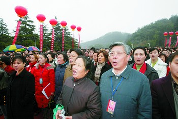 “毛主席,人民世世代代懷念您!”《東方紅》的音樂聲響起,在韶山少年合唱隊(duì)的領(lǐng)唱下,現(xiàn)場萬余人都隨著旋律放聲高唱那首在心中回蕩了千百遍的頌歌:東方紅,太陽升,中國出了個毛澤東……