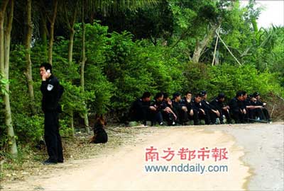 昨日上午9時許,珠海金鼎永豐錦石村口突然出現(xiàn)大批警車,約40名警察首先帶著警犬,展開大規(guī)模搜山行動,其后又在村內(nèi)挨家挨戶進(jìn)行盤查。警方為何如此大動作?據(jù)知情者透露,是因為村后一工廠內(nèi)飼養(yǎng)的狗前日中午突然從附近山頭叼回一顆人頭。