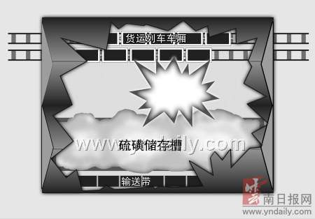 凌晨6時30分,記者趕到爆炸現(xiàn)場,雖然火勢已被基本撲滅,但距現(xiàn)場100米外,刺鼻的硝煙味依然明顯,警戒線內(nèi)消防特勤官兵繼續(xù)用水槍為設(shè)備降溫,水槍大面積覆蓋裸露的硫磺顆粒堆積池,只有戴呼吸器的消防員才能進入現(xiàn)場。記者看到,硫磺倉庫是兩個長100米、寬20米左右的聯(lián)排庫房,一個主要堆積高濃度硫磺顆粒,有傳送帶等設(shè)備;一個主要用作裝卸區(qū),并排停放了兩列共10節(jié)列車貨廂,滿載袋裝硫磺,在列車貨廂內(nèi)的硫磺包裝袋上,寫有濃度99.9%的字樣。