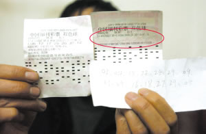 鄭州一男子持無號(hào)碼彩票稱自己中500萬大獎(jiǎng)(圖)