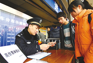 據(jù)了解,300名警察每天調查票源的行動,將持續(xù)到春運結束。(記者 黃艷春/文 周舸/攝)