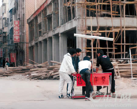 昨天下午5時許,記者和鐵警來到清溪鎮(zhèn)三中村,在下圍衛(wèi)生站門口便發(fā)現(xiàn),有幾個男子站在馬路邊,他們跟前擺著一張小桌子,用一塊紅布寫著“售火車票”。當(dāng)記者上前,欲詢問時,引起幾個票販子的懷疑。其中一名穿著黑色皮衣的男子拿一個袋子快速走開,另外幾個人站在旁邊不吱聲。記者問“有沒火車票賣”,他們都不作答。