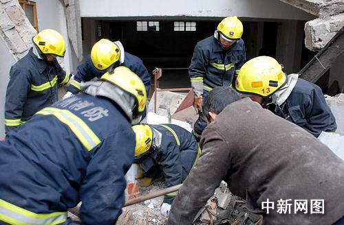 經(jīng)勘察,發(fā)現(xiàn)該男子的身體被厚重的水泥鋼筋混凝土和磚木死死卡住,動(dòng)彈不得,只有背部暴露在外邊。救援人員立即找來支撐物將覆蓋在該名群眾身上的水泥板支撐起來,清理磚塊混凝土,挖的挖、鏟的鏟讓所有的工具發(fā)揮著應(yīng)有的用途。沒有工具的就用手翻磚扒土,皮磨破了,滿手是血,但他們?nèi)徊活櫍恍闹幌氡M快將其救出,隨著空間的不斷增大,被困人的身體終于露了出來,歷時(shí)30分鐘的深挖將其救出,但被埋民工己心跳停止。