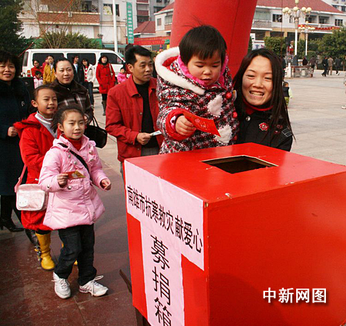 南雄市借助春節(jié)人們團(tuán)聚的機(jī)會,利用電視、公益告示、宣傳車等各種宣傳渠道,廣泛發(fā)動社會各界力量,開展“我與災(zāi)民心連心”募捐活動,以各種形式為災(zāi)區(qū)送溫暖獻(xiàn)愛心。