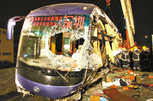 2008年2月11日1時(shí)59分,廣深高速公路南行68公里+300米處(即東莞市長安出口),發(fā)生一起大客車碰撞護(hù)欄的交通事故,造成該車司機(jī)及乘客共6人當(dāng)場死亡,1人重傷,3人輕傷、8人輕微傷。