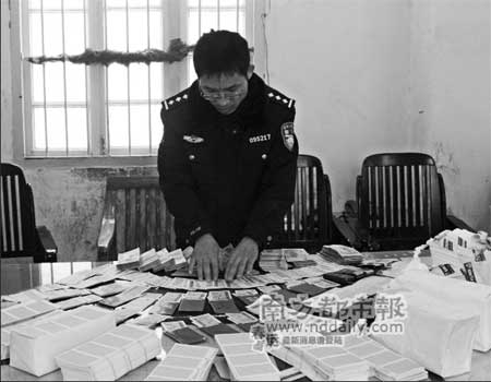 1月31日,平頭進入白云區(qū)瑤臺村××號。偵查員發(fā)現(xiàn)除了平頭之外,另兩人為一少年和一個20多歲的女子。2月3日,偵查員小王肩扛一桶純凈水敲開了門。小王一眼瞧見客廳的茶幾上堆滿了車票和紅包,地板上擺放有打印機、裁紙刀,果然是制販假票的窩點!小王大聲咳嗽了一聲,守候在外門邊的偵查員聞聲一擁而入,分別抓獲了正在睡覺的平頭和女子。