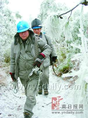 據(jù)曲靖供電公司總經(jīng)理姜洪東介紹,轄區(qū)整個輸電網(wǎng)絡(luò)設(shè)計是按照30年一遇的冰凍災害設(shè)計,覆冰厚度設(shè)計是按照5-20毫米厚度,現(xiàn)在實地察看以后,覆冰厚度局部達到40毫米以上。記者獲悉,沾益縣多個片區(qū)鄉(xiāng)村,播樂鄉(xiāng)水田村,白水鎮(zhèn)哈拉益片區(qū)等地約2900余戶停電,市縣相關(guān)電力公司正努力組織人員進行搶修。