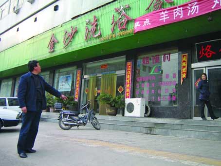 3月5日晚上9時,記者以客人身份進入青屏路西段的金沙洗浴食府。