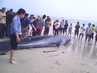 海南文昌一條重逾兩千斤的鯨魚擱淺死亡(圖)