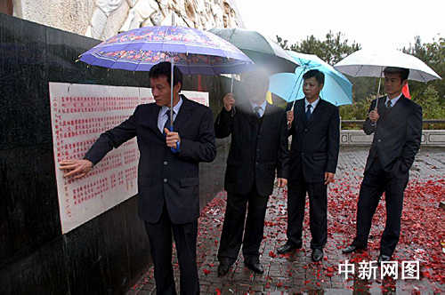 中新網(wǎng)韶關(guān)4月2日電(馮昶 李凌 鐘俊鋒 莫沖海)4月2日,陰雨綿綿中,包括縣黨政軍主要官員在內(nèi)的始興縣各界人士一千多人,聚集在廣東始興縣丹鳳山革命烈士陵園,祭奠革命先烈,緬懷今年初在抗冰復(fù)電戰(zhàn)斗中因公殉職的劉煥松烈士。
