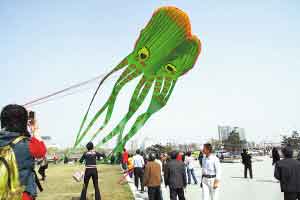 “章魚” 飛天欲當“世界上最大單線軟體風箏”