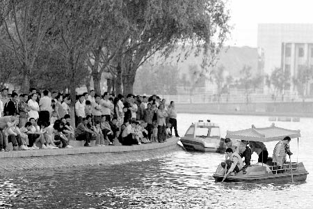 5月3日中午12時(shí)35分許,鄭州市特巡警二大隊(duì)接警,稱(chēng)一小孩掉進(jìn)帝湖了。